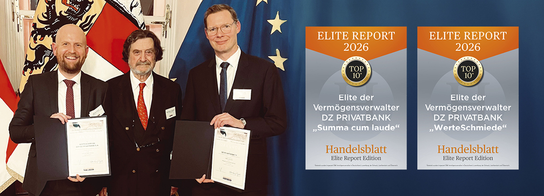 Die DZ PRIVATBANK setzt ihre Erfolgsgeschichte fort: Bereits zum zwölften Mal in Folge wurde das genossenschaftliche Kompetenzcenter für Private Banking mit der Höchstnote „summa cum laude" ausgezeichnet und führt erneut die Elite der Vermögensverwalter im deutschsprachigen Raum mit an.